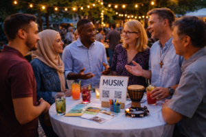 20:15 Uhr: Info- und Austausch-Stände (→ Caritas-Konferenzen, …) / Musik / Internationale Leckereien für alle
